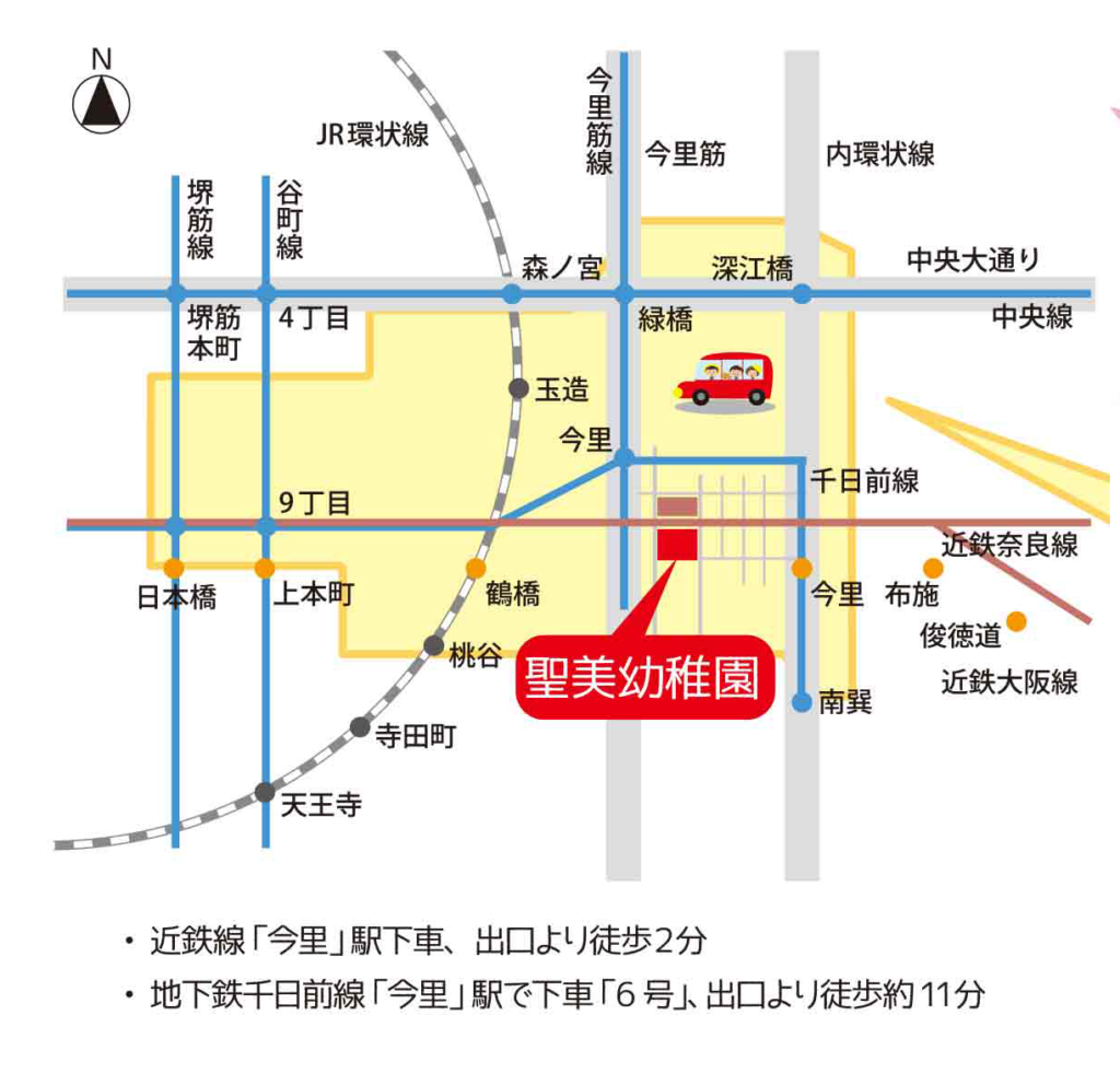 カテゴリー バス運行範囲ばすうんこうはんい 通園バス スクールバス送迎を4台で運行しています。ホームクラスバス送迎としても運行しています。 ぱんだばす らいおんばす ぞうばす きりんばす 通園バス運行範囲 大阪市内 東成区、生野区、城東区南部、天王寺区北東部、中央区南東部 詳細ルートはこちら